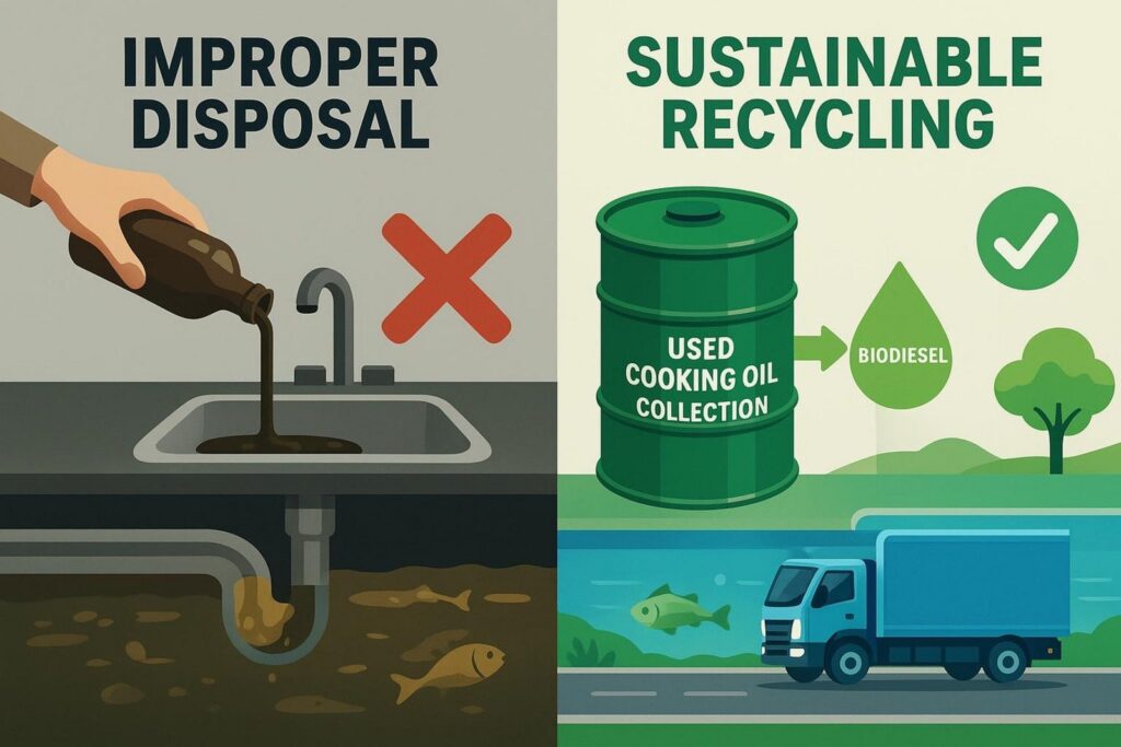 The good news: used cooking oil can be turned into something useful. Recycling keeps oil out of drains and landfills and can convert it into biodiesel, a cleaner, renewable fuel. This helps cut emissions and reliance on fossil fuels.